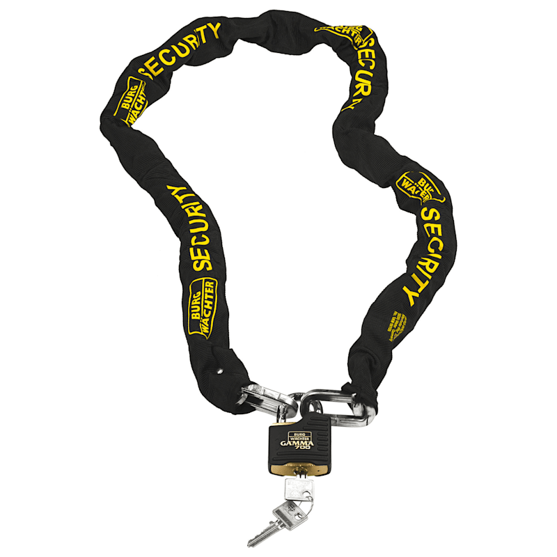 BURG-WÄCHTER, Allgemeiner Verschluss-Ketten-Kombinationsschloss, Länge: 1.500 mm, Modellnummer: GKM 10/150/700, Material: gehärteter Stahl, Farbe: schwarz, Ergänzung: mit Vierkantkette, mit Kunstfaserummantelung, Schlüssel Anzahl: 2 St., Schlüsselausführung: Profilschlüssel, Ausführung: für Zweiräder, mit Vorhangschloss, Maß Vierkantkette: 10 mm