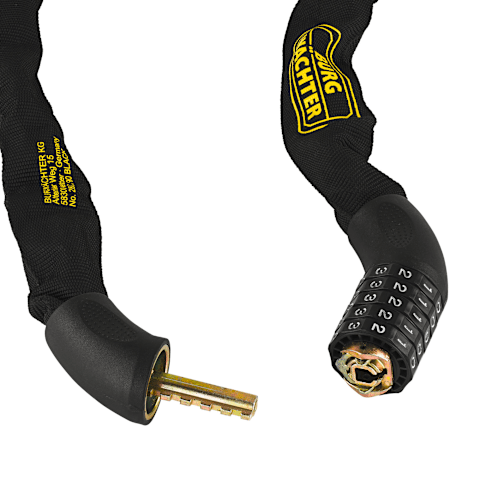 BURG-WÄCHTER, Allgemeiner Verschluss-Vierkantkette, Länge: 900 mm, Modellnummer: 280 C 90, Material: gehärteter Stahl, Farbe: schwarz, Ergänzung: mit Kunstfaserummantelung, Schlüssel Anzahl: 0 St., Schlüsselausführung: ohne Schlüssel, Ausführung: für Zweiräder, mit Zahlencode, Maß Vierkantkette: 6 mm