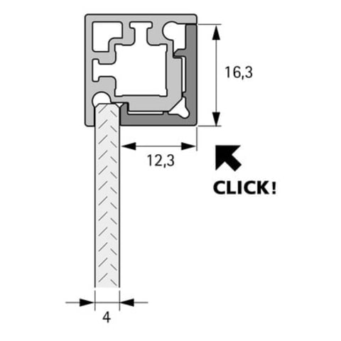 • Zur Fixierung eines 4 mm Glaselements (ESG Sicherheitsglas), die andere Profilseite ist geschlossen, z.B. für eine Türfläche• Zum Aufklipsen auf das Glas-Eckprofil, Bestell-Nr. 9 303 912