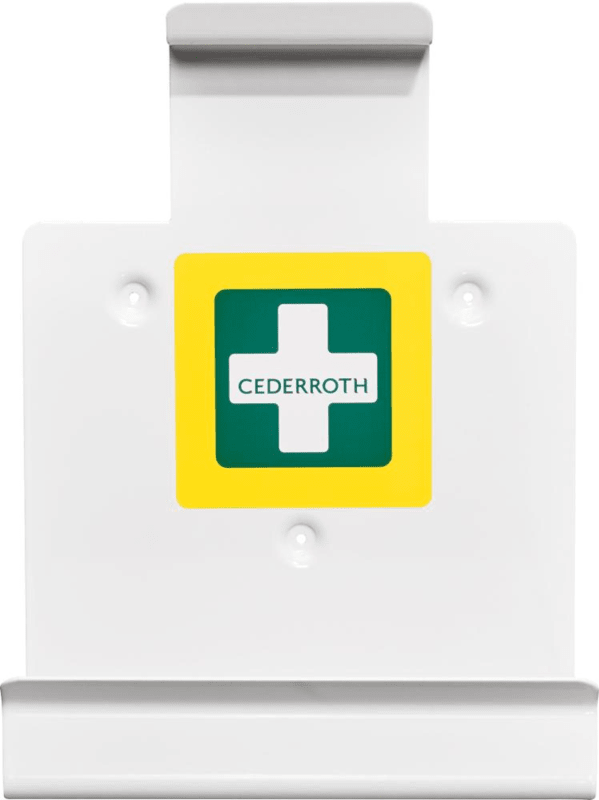 Wandhalter für Erste-Hilfe-Kit • Robuste, stabile Wandhalterung aus Blech zur einfachen Montage an der Wand • Passend zu First Aid Kit DIN Hinweis: Optimale Ergänzung zur ortsfesten Erste-Hilfe-Station von Cederroth.