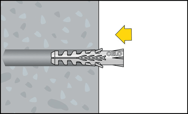 Normaldübel F• Hohe Auszugswerte aufgrund starker Spreizfähigkeit (vierseitige Spreizung im mittleren Bereich) • Exakte Schraubenführung (seitliches Austreten der Schraube nicht möglich) • Zusätzli