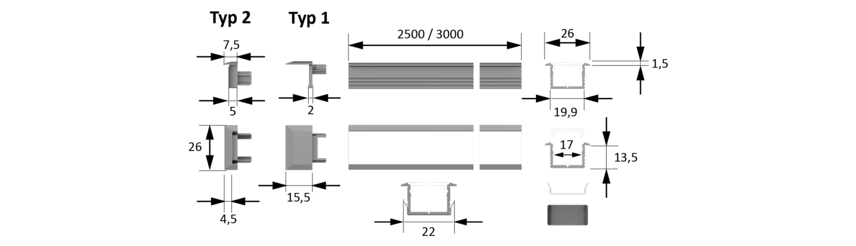 Meesenburg Artikelbezeichnung: CHANNELL C SCHWARZ OPAL 10SET L=3000 ALU-UND ABDECKPROFIL 5587216