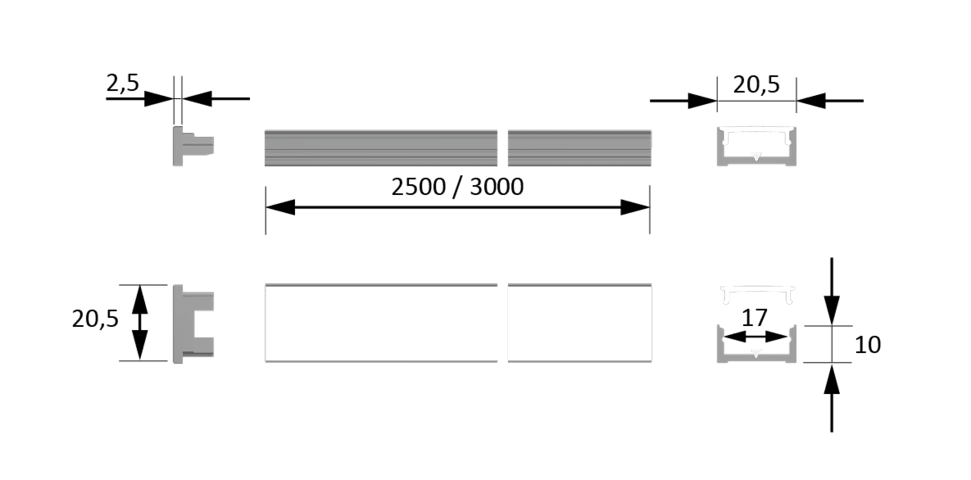 Magic by Halemeier ChannelLine D Alu opal 10er Set L=2500 Alu- und Abdeckprofil