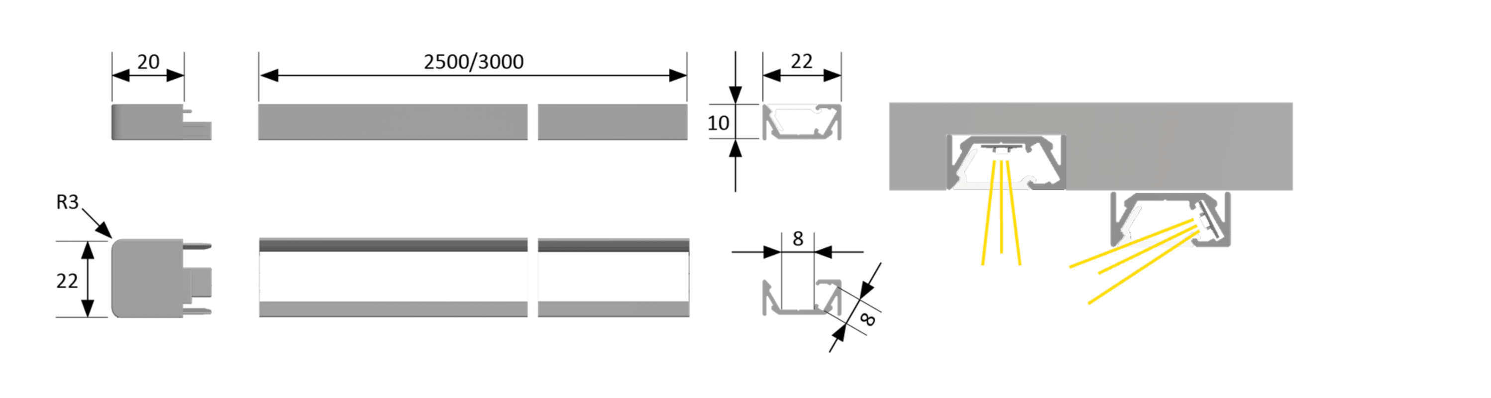 Magic by Halemeier ChannelLine G opal L=2500 Alu-und Abdeckprofil