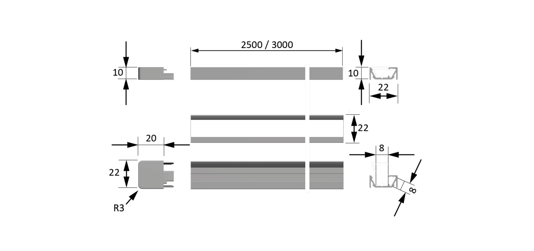 Meesenburg Artikelbezeichnung: CHANNELLINE G SCHWARZ OPAL L=2500 ALU-UND ABDECKPROFIL 5587555
