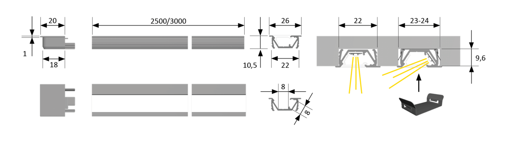 Magic by Halemeier ChannelLine G2 opal L=2500 Alu-und Abdeckprofil