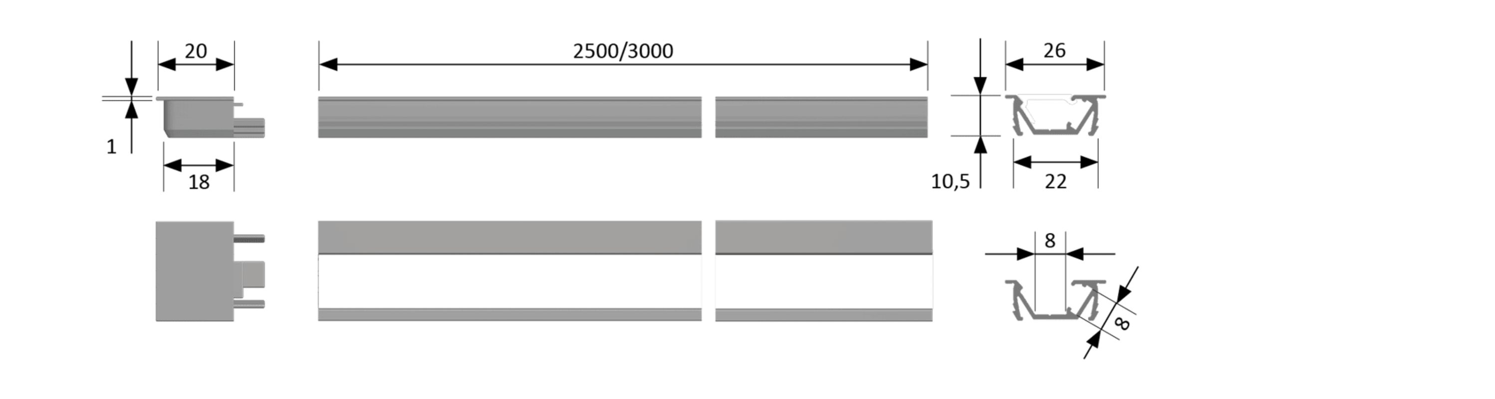 Magic by Halemeier ChannelLine G2 schwarz opal L=3000 Alu-und Abdeckprofil