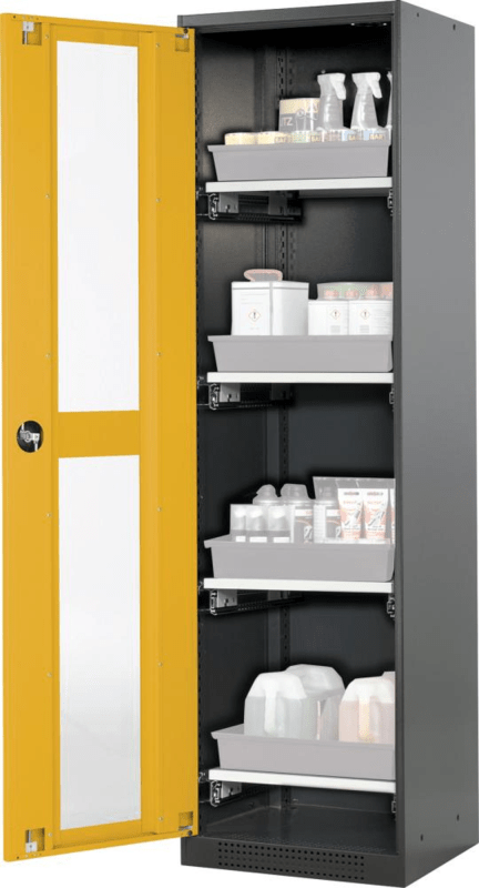 CHEMIKALIENSCHRANK GLASA. 545X1950MM 1 TÜR GELB 4 AUSZ 3056304030579
