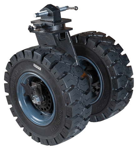 Containerrollen-Satz bestehend aus 4 Lenkrollen mit Vollgummi-Bereifung. Mit Drehverschluss für ISO 1161-Eckbeschläge. Tragfähigkeit Einzelrolle: 3000 kg dynamisch bei max. 6 km/h; Tragfähigkeit kompl
