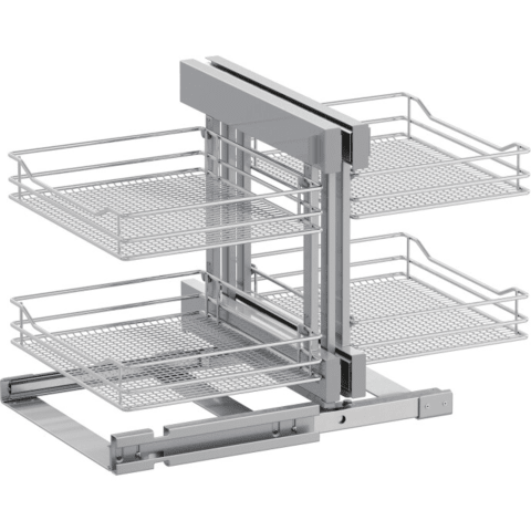 Auch der größte Stauraum nützt wenig, wenn er nicht erreichbar ist. Deshalb ermöglicht diese Systemlösung den vollen Zugriff auf den Schrankinhalt und verwandelt jede Ecke in einen funktionalen Raum. Die Montage erfolgt seitenunabhängig: Der Rahmen wird auf dem Boden des Eckschrankes montiert