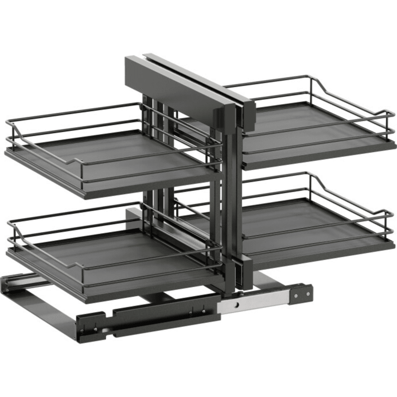 ZUGANG ZU JEDER ECKEAuch der größte Stauraum nützt wenig, wenn er nicht erreichbar ist. Deshalb ermöglicht diese Systemlösung den vollen Zugriff auf den Schrankinhalt und verwandelt jede Ecke in einen