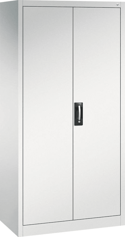 Flügeltürenschrank, 70 kg, Böden verzinkt• Material: Stahlblech mit hochwertiger Einbrennbeschichtung • Flügeltüren: verstärkt, Aufhängung mit Drehbolzen, Öffnungswinkel 110° • Verschluss: patentier