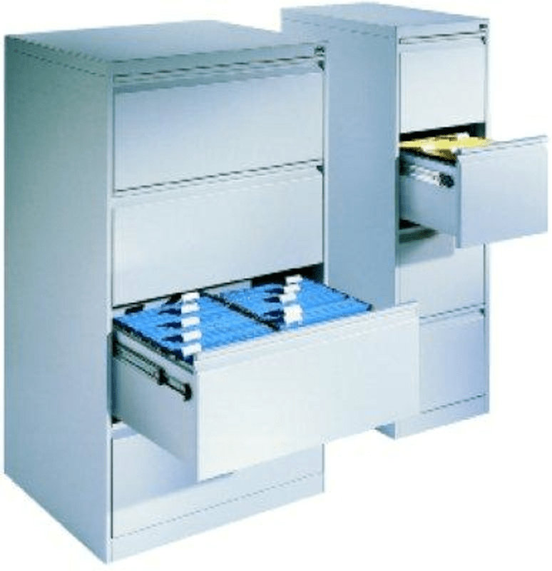 Hängeregistraturschrank• Material: Stahlkonstruktion mit hochwertiger Einbrennbeschichtung RAL 7035 lichtgrau • Gehäuse 1-bahnig: körperschallgedämpft, mit doppelwandigen Schubladenblenden • Schubla