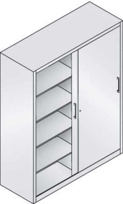 Schiebetürenschrank, Höhe 1950 mm• Langlebige Stahlkonstruktion • Türen: rollengelagert und leichtgängig • Material: Stahlblech mit hochwertiger Einbrennbeschichtung • Türen: leichtgängig, rollenge