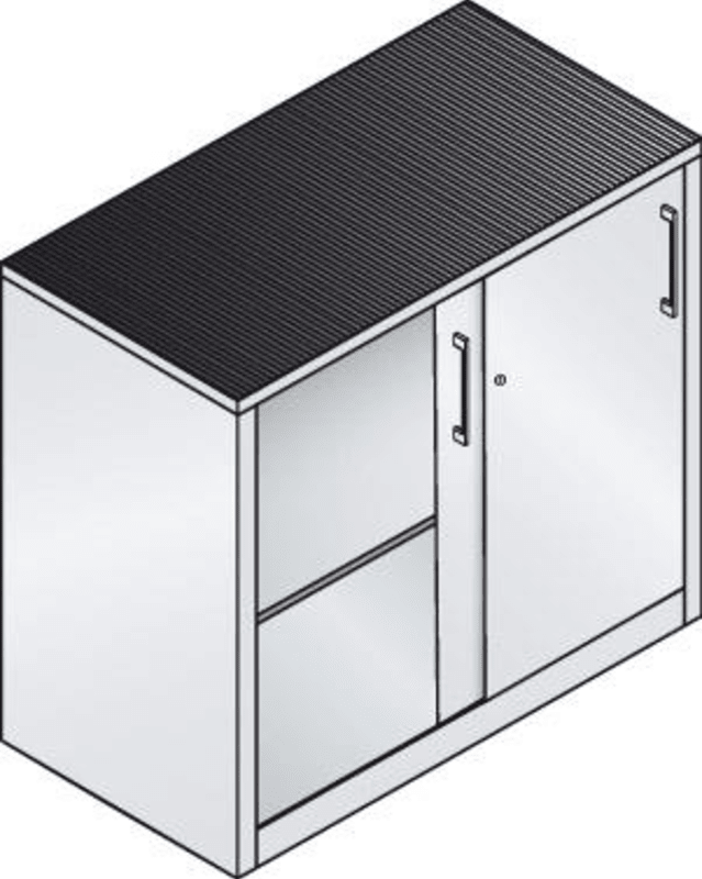 Schiebetüren-Beistellschrank, Höhe 1000 mm• Langlebige Stahlkonstruktion • Türen: rollengelagert und leichtgängig • Material: Stahlblech mit hochwertiger Einbrennbeschichtung • Mit Gummiriefenmatte