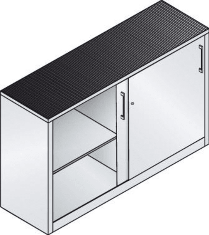 Schiebetüren-Beistellschrank, Höhe 1000 mm• Langlebige Stahlkonstruktion • Türen: rollengelagert und leichtgängig • Material: Stahlblech mit hochwertiger Einbrennbeschichtung • Mit Gummiriefenmatte