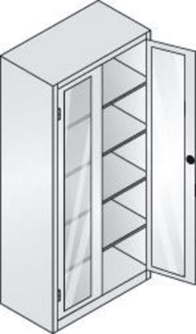 Werkzeug- und Materialschrank, mit 4 verstellbaren Einlegeböden• Langlebige Stahlblechkonstruktion • Material: Stahlblech mit hochwertiger Einbrennbeschichtung • Sichtfenster: 3-mm-Acrylglas • Türe