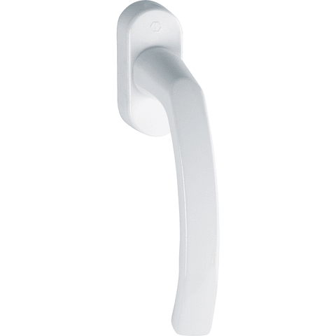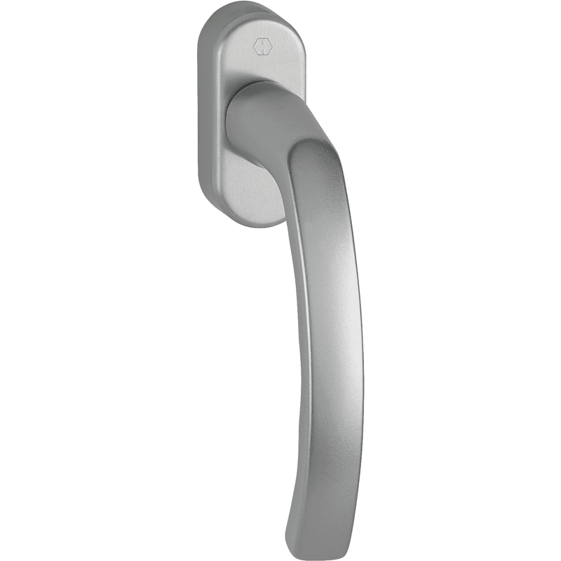 HOPPE-Aluminium-Dreh-/Kipp-Fenstergriff: • geprüft nach DIN EN 13126-3: 23/180-0150/03/C1 und RAL-GZ 607/9 • Rastung: 90° • Abdeckung: Teil-Abdeckkappe • Unterkonstruktion: Kunststoff, Stütznocken • S