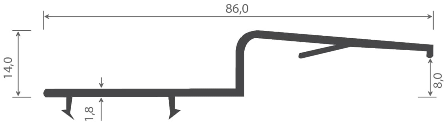 Deckelaufnahmeprofil 86 mm Lg. 6,00 m Weiß, VE: 60 m für Salamander 73er/76er/82er/92er