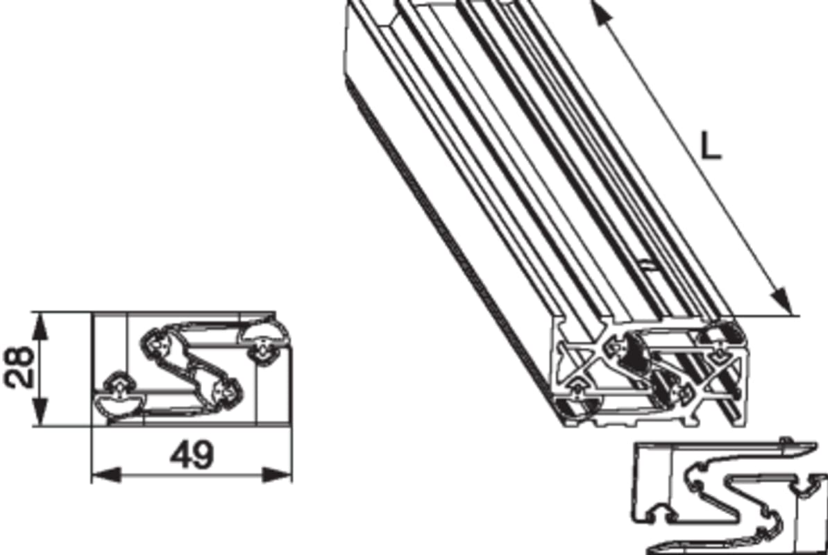 Packung Dichtungsschiene breit HS in PVC 28 senk und waagerecht V2 L=5.000mm lichtgrau RAL 7035