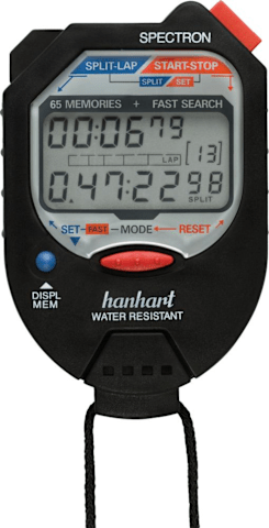 Digital-Stoppuhr Spectron• ABS-Kunststoffgehäuse • Maße 90 x 60 x 19 mm • Wasserdicht bis 100 m • Sichtfenster ultraschallverschweißt • 2-Tasten-Bedienung • 2,5-zeilige LCD-Anzeige • 2-stellige