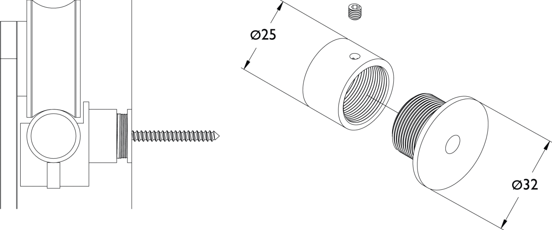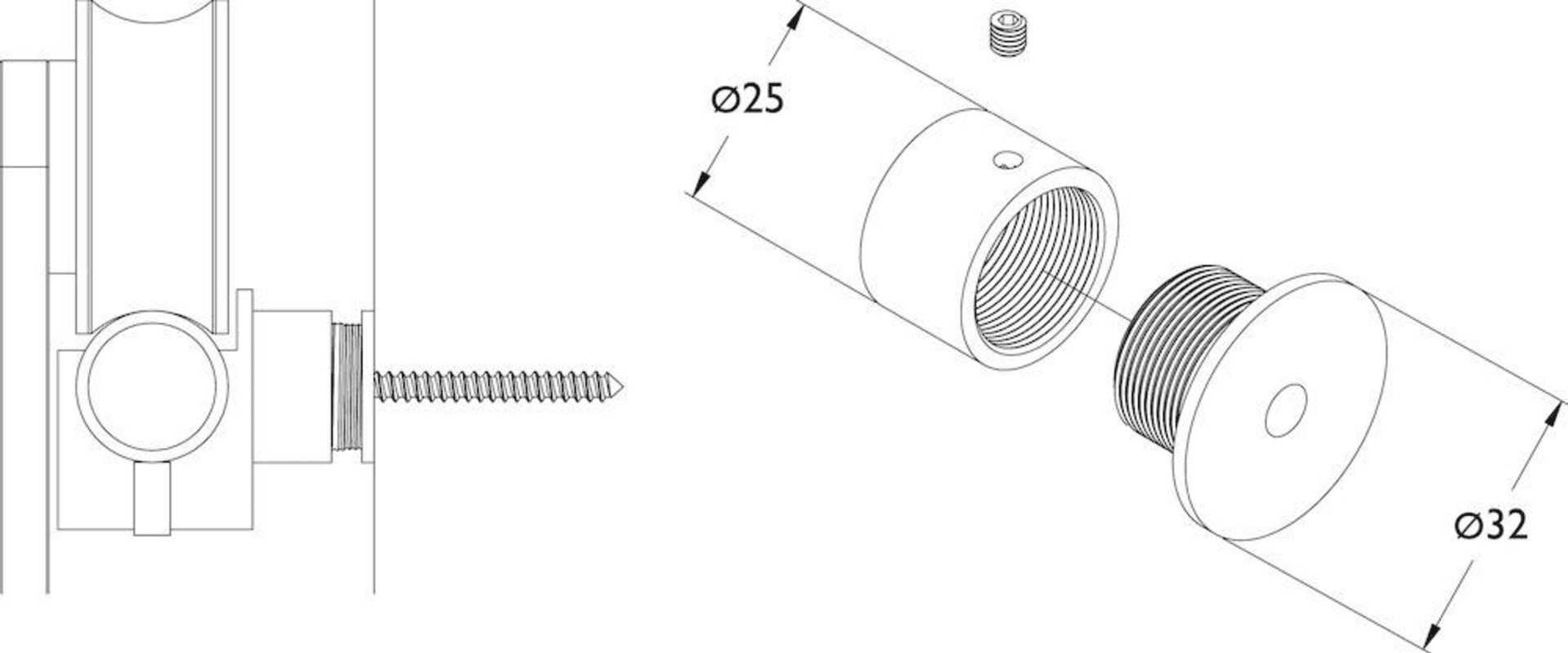 Distanzbefestigung zu Schiebetürsystem 9040 ER, verstellbar von 18 - 27 mm Wandabstand, passend zu Wandhalter 603 SD, Oberfl. 60 (Edelstahl matt)