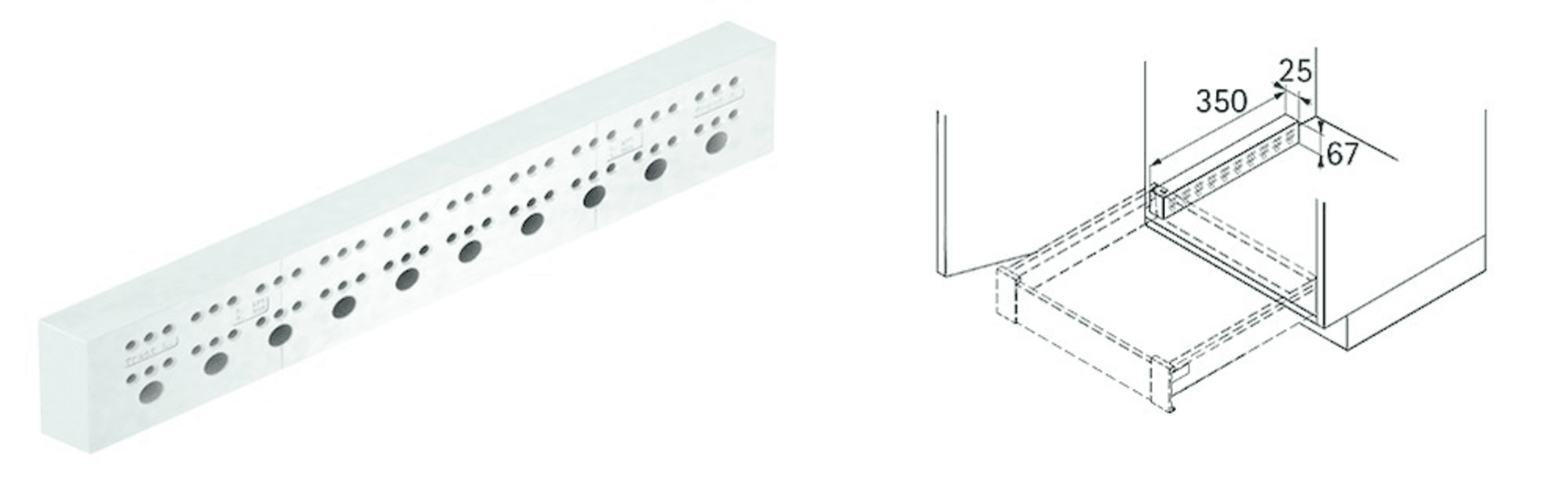 • Zur Überbrückung des Tür- / Scharniereinsprungs• Belastbarkeit max. 20 kg• Kunststoff anthrazitHinweise:• Einsatzbereich AvanTech YOU / Actro YOU max. NL 600 mm• Einsatzbereich Holzschubkasten / FR