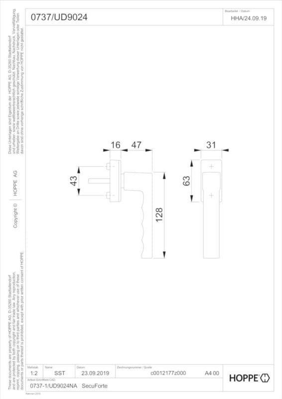 HOPPE Fenstergriff Toulon 0737/UD9024, Standard, eckig,Vierkant 7/32-42, bronzefarben eloxiert