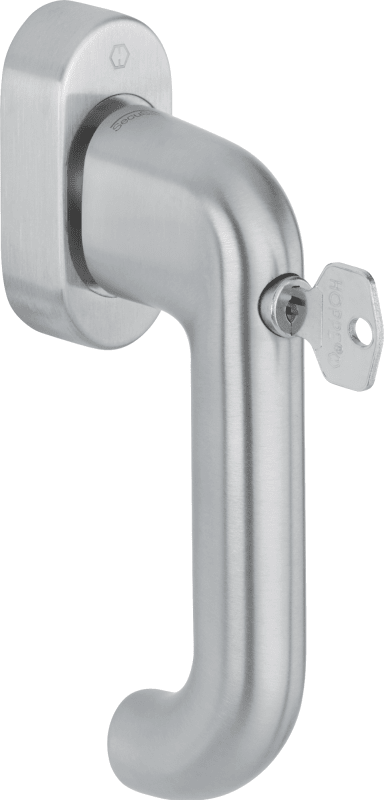 HOPPE Fenstergriff Paris E038S/UD9056, abschließbar, oval,Vierkant 7/20-30, gleichschließend, 1130, edelstahl matt-SecuSan