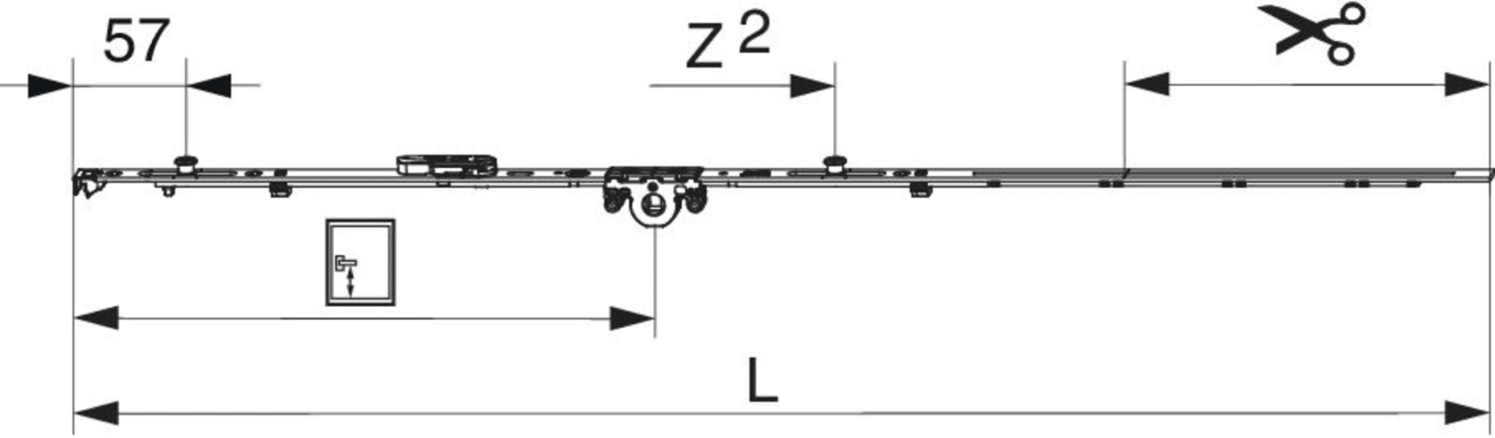 Maco MM Mittelverschluss fix waagrecht gegenläufig 800 FFH/FFB 545-800 mit 2 i.S. silber 229393