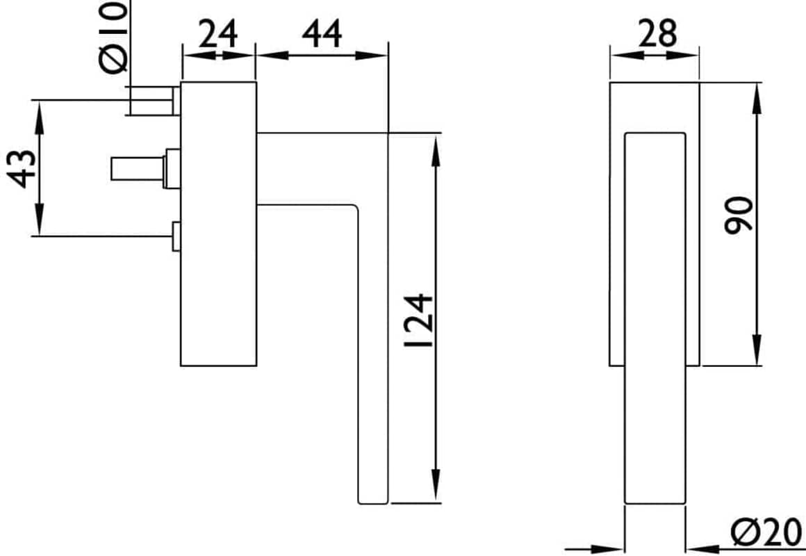 Drehkipp-Rasterolive 1682 L DKSI WEST, Stiftlänge ca. 32 mm vorstehend, abschließbar mit kantigem Cover, Oberfl. 74 (Classic Black, ähnl. RAL 9005)