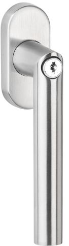 Drehkipp-Rasterolive 1802 DKI-C BASIC 02, Stiftlänge 37/43 mm vorstehend, Druckzylinder E99 im Griffteil, Schrauben M5x50 mm, für einbruchhemmende Fenster nach DIN EN 1627, Oberfl. 60 (Edelstahl matt)
