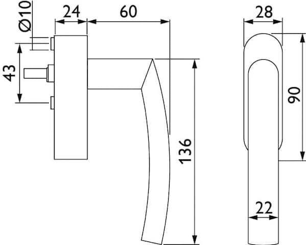 Drehkipp-Rasterolive 1807 DKSI BASIC 07, Stiftlänge ca. 32 mm vorstehend, abschließbar mit ovalem Cover, Oberfl. 60 (Edelstahl matt)