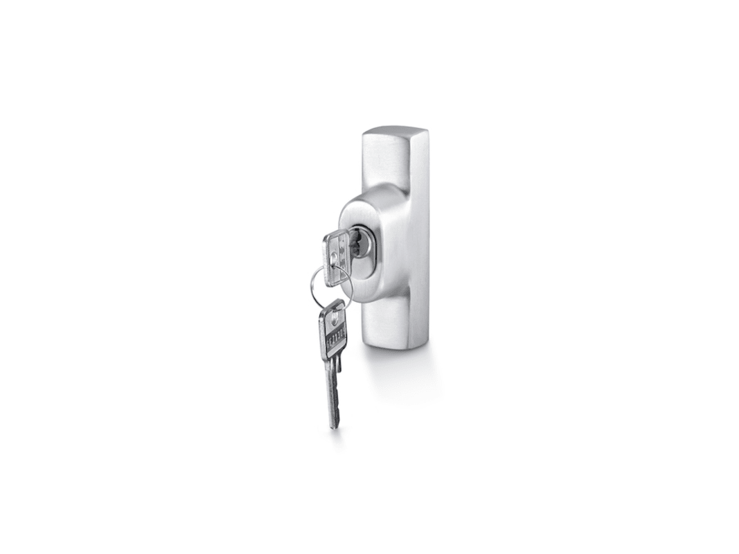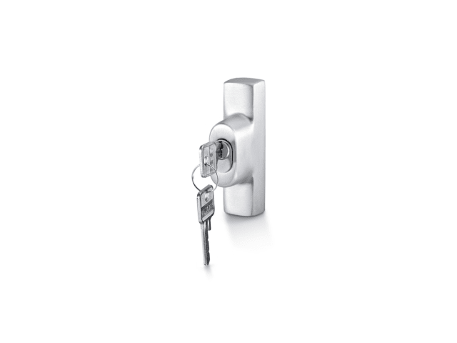 GEZE Zusatzriegelschloss F 1200; Ausführung: abschließbar; Material: Aluminium; Befestigungsart: verdeckt verschraubt; Einsatzbereich: Drehkipp; Basis: Zusatzriegelschloss; Funktion: gleichschließend;