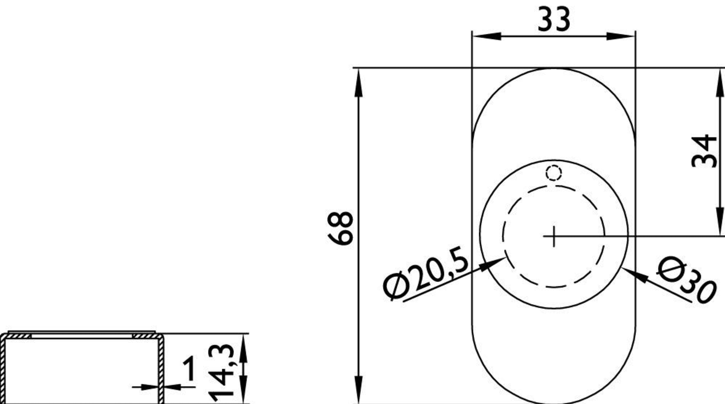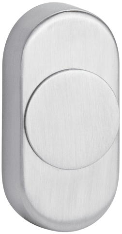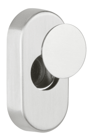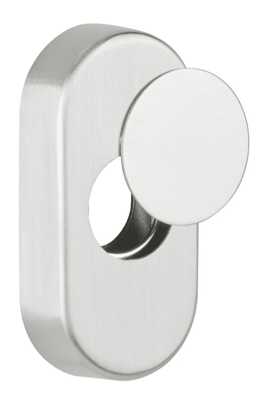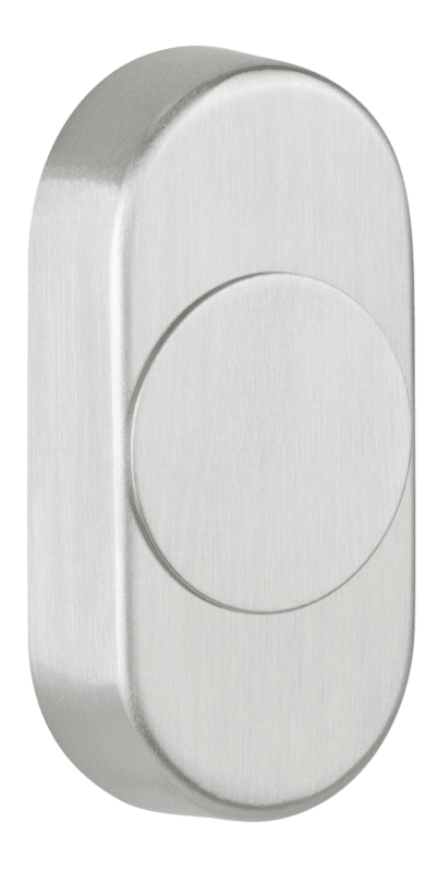 DKM - Dornrosette oval, Abdeckung rund - senkrecht, 33 x 68 mm, ohne Schrauben, Oberfl. 60 (Edelstahl matt)