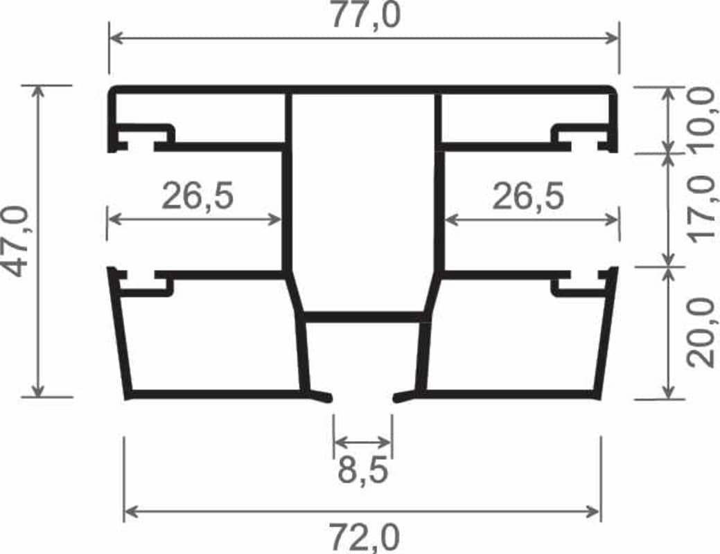 Doppel-Rollladenführung 77x47 mm Lg. 6,00 m foliert, GK Braun, ohne Bürste 119 2001-167 OREGON IV [2]