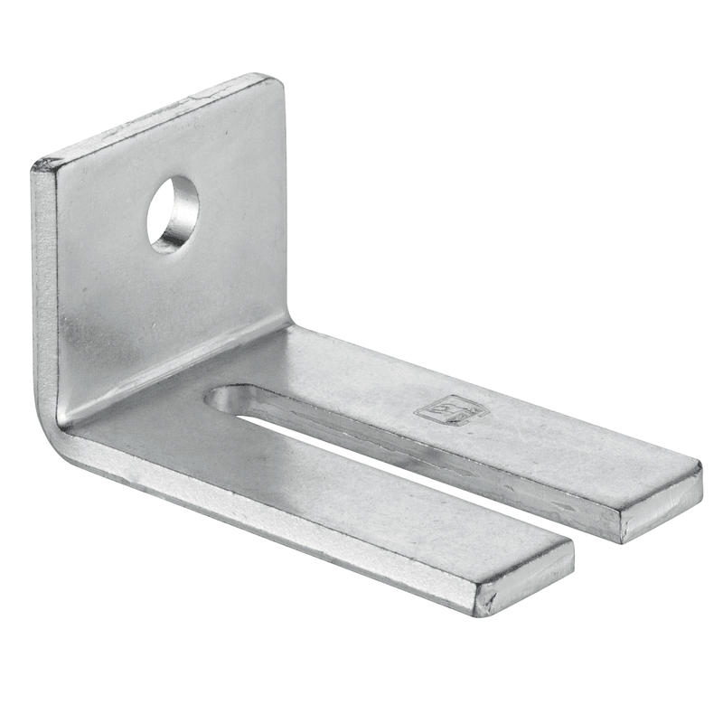 Winkelbefestigung mit Seitenverstellmöglichkeit, verwendbar mit zwei höhenverstellbaren Muffen 104.