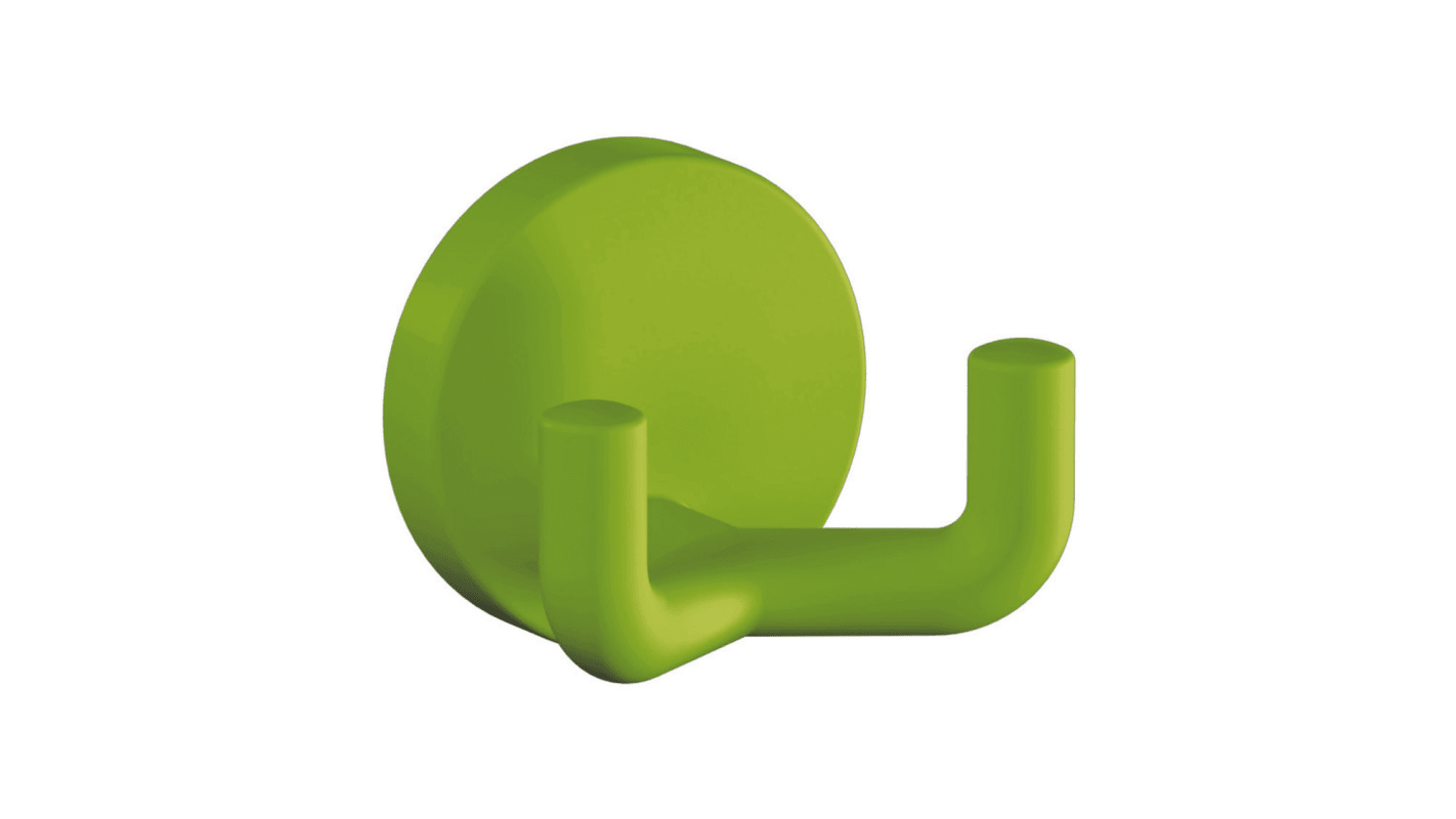 HEWI Haken 477.90B025; Ausführung: mit Rosette; Material: Kunststoff; Befestigungsart: verdeckt verschraubt; Einsatzbereich: Wand; Farbe: grün; Farbton: apfelgrün; Tiefe: 43,5 mm; Oberfläche: matt; Mo