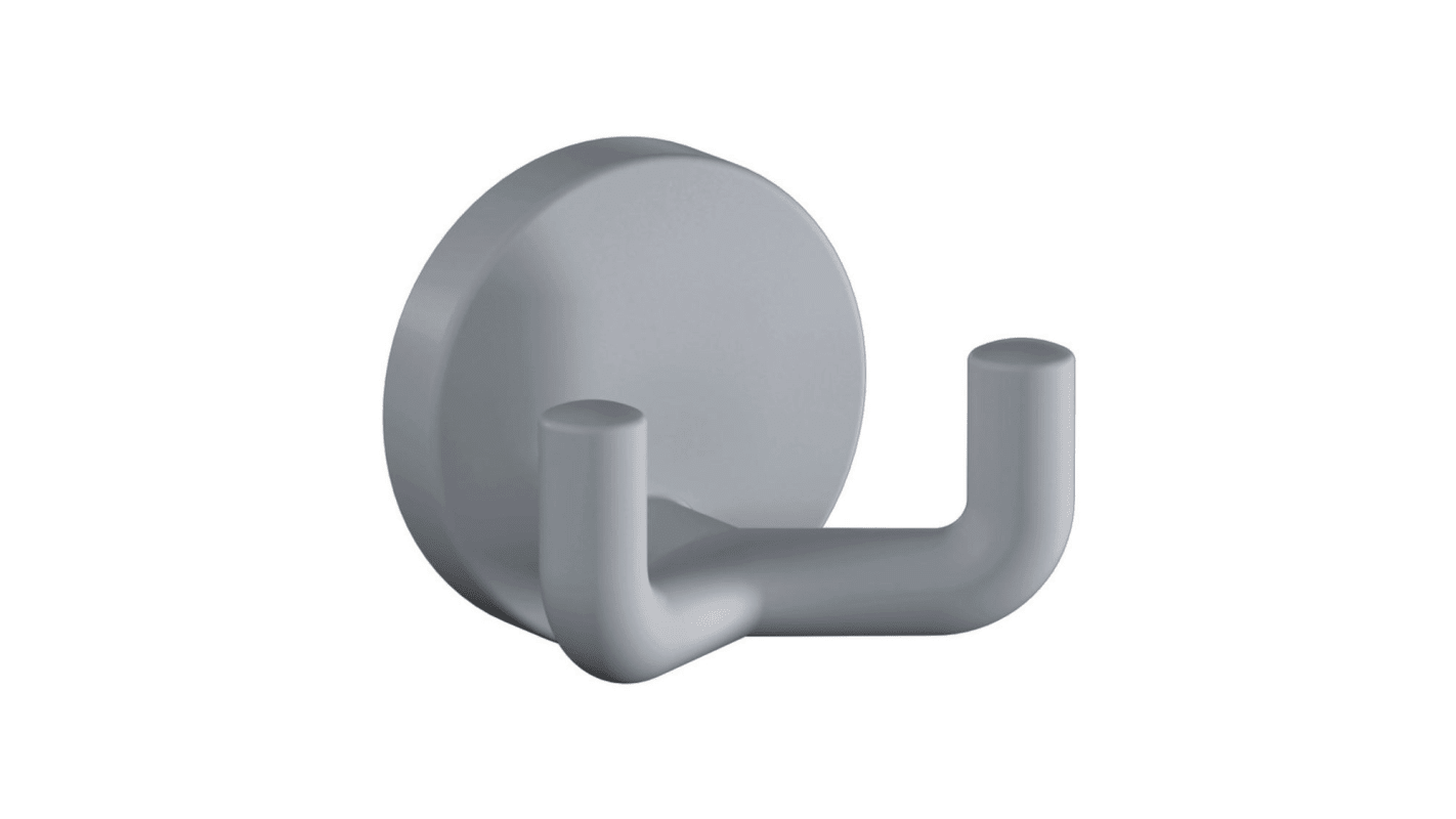HEWI Haken 477.90B025; Ausführung: mit Rosette; Material: Kunststoff; Befestigungsart: verdeckt verschraubt; Einsatzbereich: Wand; Farbe: grau; Farbton: felsgrau; Tiefe: 43,5 mm; Oberfläche: matt; Mon