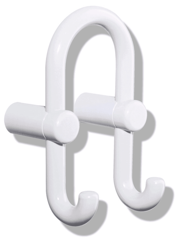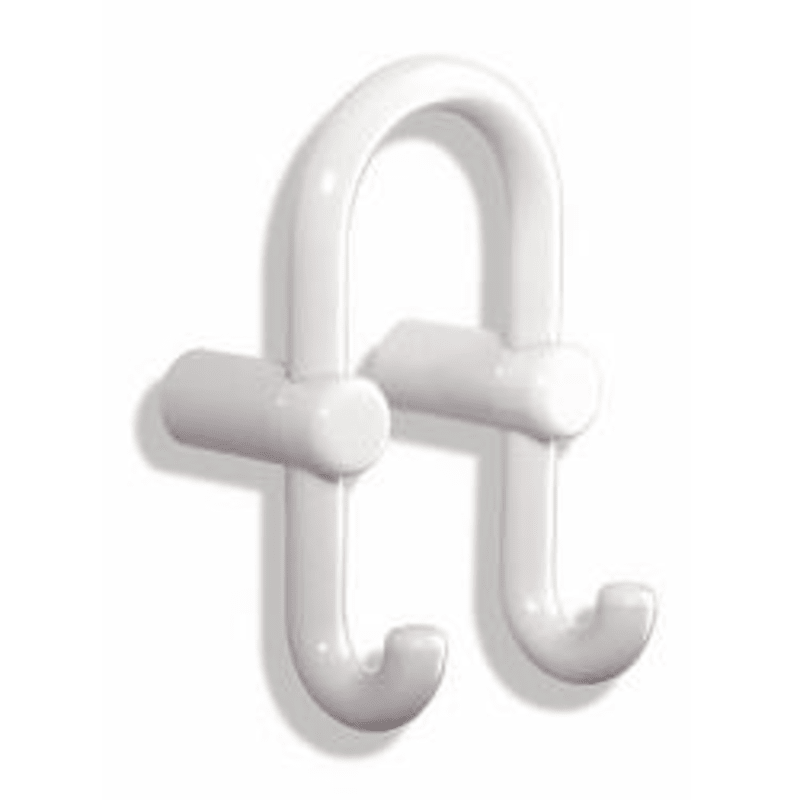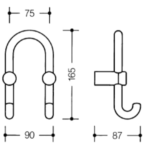 Garderobendoppelhaken der Serie 801. Doppelhaken mit nach vorn zeigenden Haken. Dient zum Aufhängen von Kleidungsstücken und anderen Utensilien. Leicht zu reinigen. 90 mm breit, 165 mm hoch 87 mm tief