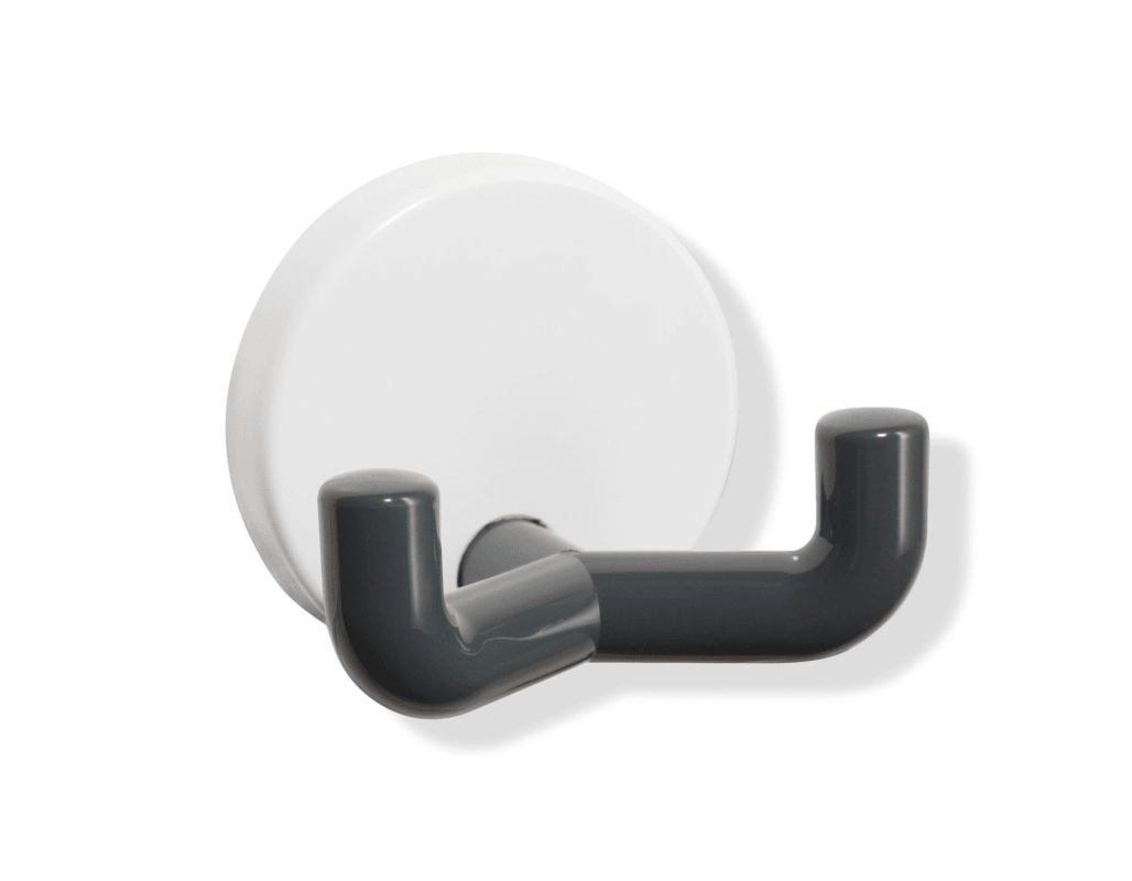 HEWI Haken 800.90.04099; Ausführung: mit Rosette; Material: Kunststoff; Befestigungsart: verdeckt verschraubt; Einsatzbereich: Wand; Farbe: rot; Farbton: rubinrot; Tiefe: 43,5 mm; Oberfläche: hochglan