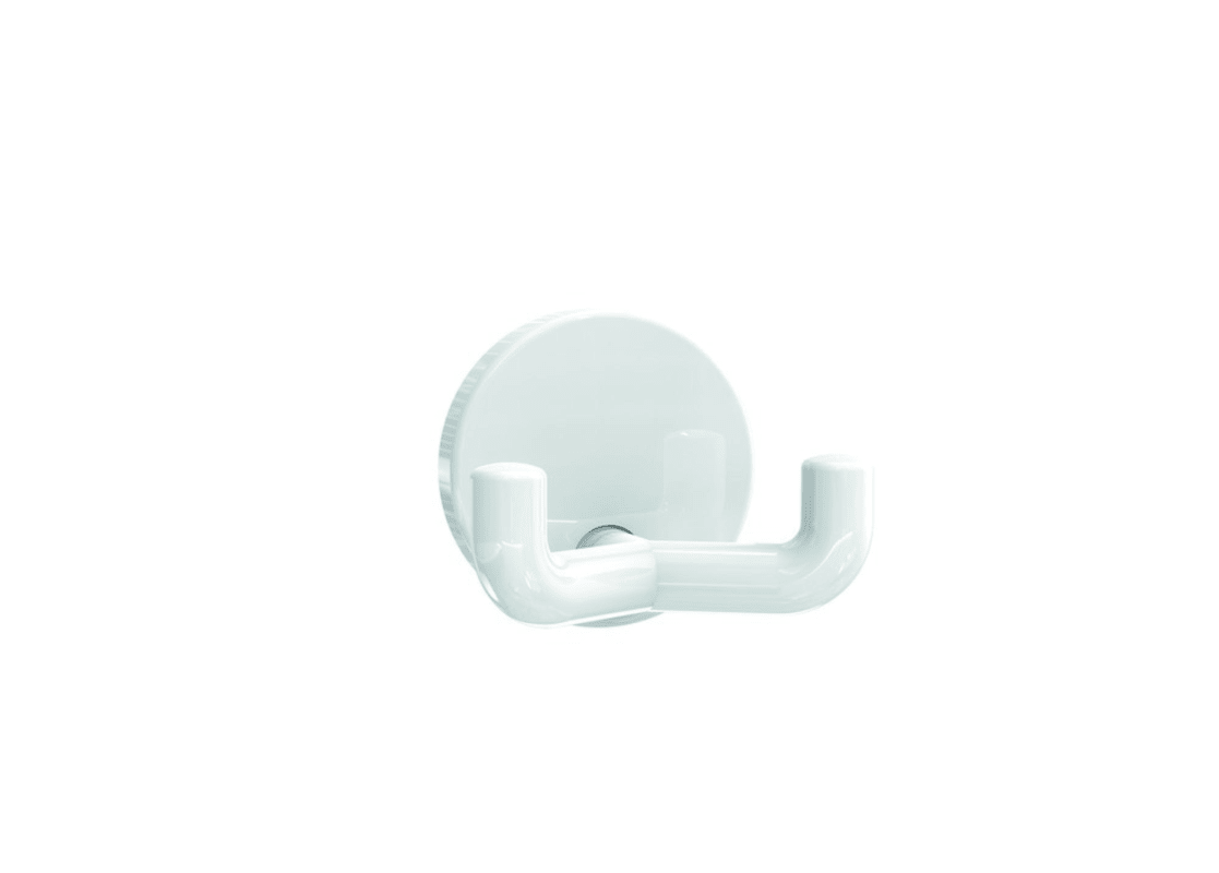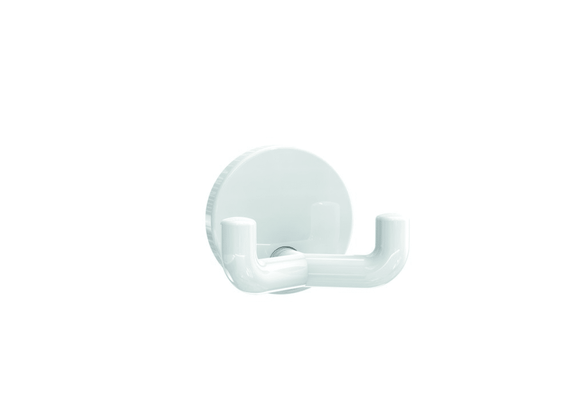 Doppelhaken der Serie 801. Doppelhaken mit Befestigungsrosette. Ergonomisch und funktional in einer einfachen und zeitlosen Formensprache gestaltet. Der Doppelhaken dient zum Aufhängen von Wäschestück