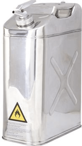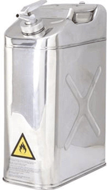 Dosierkanister • Material: Edelstahl 1.4401 • Dichtungen: PTFE • Herausnehmbare Flammsperre aus perforiertem Edelstahl • Kennzeichnungsaufkleber mit Warnsymbolen/-hinweisen • Feindosierer nach allen Seiten drehbar • Mit Belüftung und Überdruckventil • Verschluss öffnet sich auf Hebeldruck und schließt nach Loslassen wieder Hinweis: Zum sicheren Lagern, Verteilen, Befüllen und Transportieren entzündbarer Flüssigkeiten aller Gefährdungsklassen.