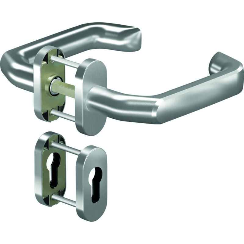 OGRO Drückergarnitur 8116V/6610SR FS; Produkttyp: Drückergarnitur; Produkttyp (Hersteller): Drückergarnitur; Ausführung: Rosette; Befestigungsart Drückerrosette (außen): verdeckt verschraubt; Befestig