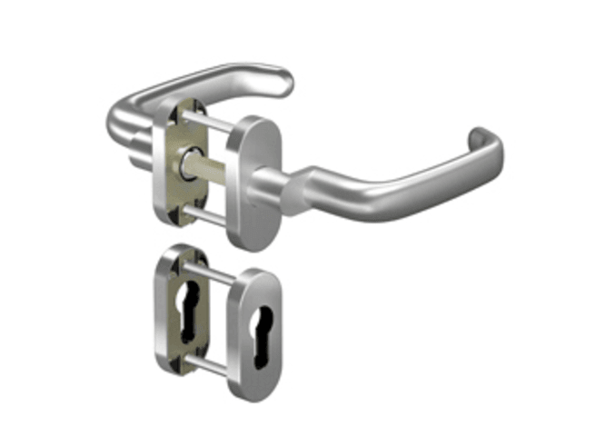 OGRO Drückergarnitur 8527A/6621SR FS; Produkttyp: Drückergarnitur; Produkttyp (Hersteller): Drückergarnitur; Ausführung: Rosette; Befestigungsart Drückerrosette (außen): verdeckt verschraubt; Befestig