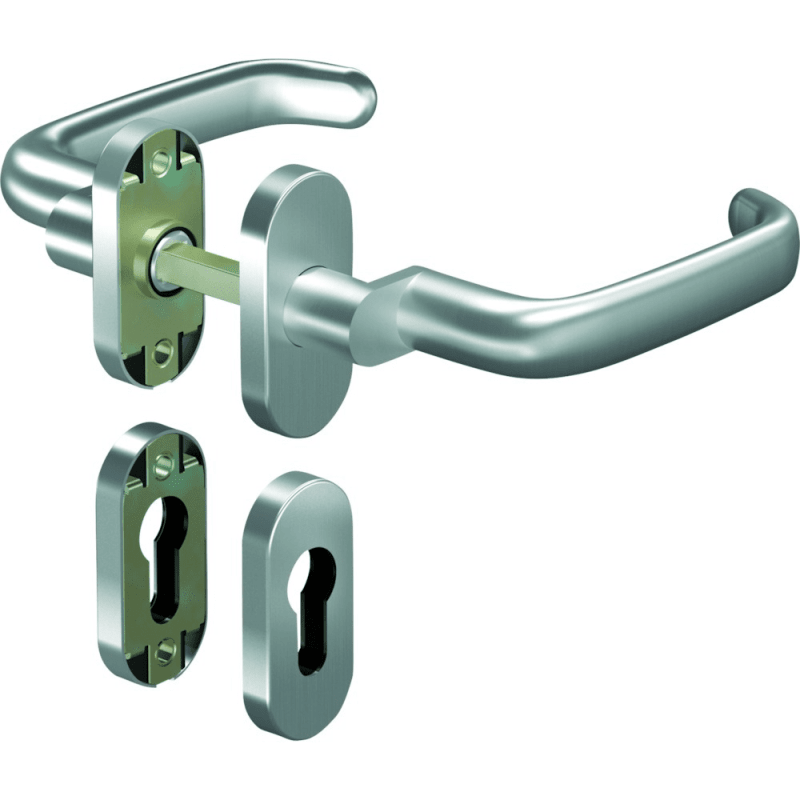 OGRO Drückergarnitur Premium 8527A/6621; Produkttyp: Drückergarnitur; Produkttyp (Hersteller): Drückergarnitur; Ausführung: Rosette; Befestigungsart Drückerrosette (außen): verdeckt verschraubt; Befes