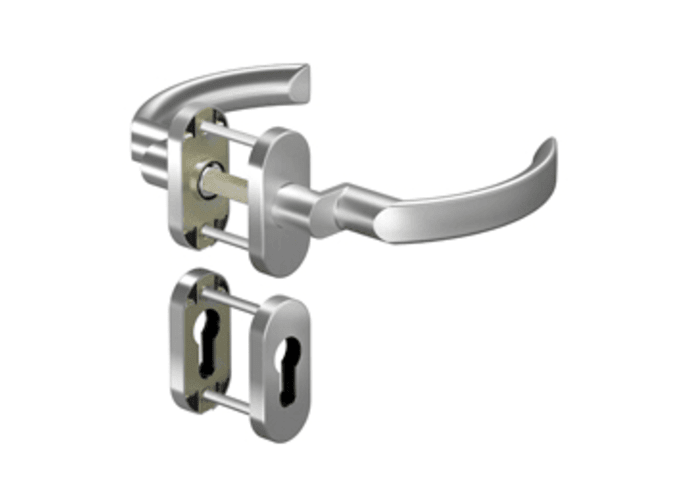 OGRO Drückergarnitur 8830A/6621SR; Produkttyp: Drückergarnitur; Produkttyp (Hersteller): Drückergarnitur; Ausführung: Rosette; Befestigungsart Drückerrosette (außen): verdeckt verschraubt; Befestigung
