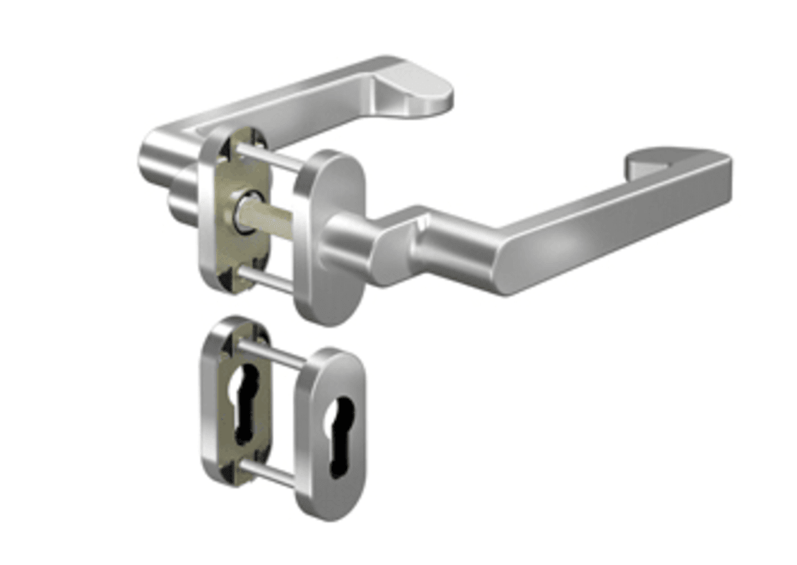 OGRO Drückergarnitur 8916A/6621SR; Produkttyp: Drückergarnitur; Produkttyp (Hersteller): Drückergarnitur; Ausführung: Rosette; Befestigungsart Drückerrosette (außen): verdeckt verschraubt; Befestigung