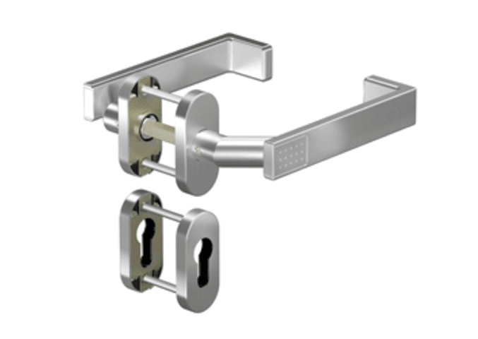 OGRO Drückergarnitur 8871V/6620SR FS; Produkttyp: Drückergarnitur; Produkttyp (Hersteller): Drückergarnitur; Ausführung: Rosette; Befestigungsart Drückerrosette (außen): verdeckt verschraubt; Befestigungsart Drückerrosette (innen): verdeckt verschraubt; Befestigungsart Schlüsselrosette (außen): verdeckt verschraubt; Befestigungsart Schlüsselrosette (innen): verdeckt verschraubt; Befestigungstechnik: ohne Stütznocken; Montageart: aufliegend; Form Drückerrosette: oval; Form Schlüsselrosette (außen): oval; Form Schlüsselrosette (innen): oval; Vierkant: 9 mm; Material: Edelstahl; Form Türgriff (innen): gekröpft; Form Türgriff (außen): gekröpft; Länge Türgriff (innen): 157 mm; Länge Türgriff (außen): 157 mm; Höhe Türgriff (innen): 63 mm; Höhe Türgriff (außen): 63 mm; Breite Drückerrosette (außen): 31,5 mm; Breite Drückerrosette (innen): 31,5 mm; Länge Drückerrosette (außen): 68,5 mm; Länge Drückerrosette (innen): 68,5 mm; Höhe Drückerrosette (außen): 9 mm; Höhe Drückerrosette (innen): 9 mm; Breite Schlüsselrosette (außen): 31,5 mm; Breite Schlüsselrosette (innen): 31,5 mm; Länge Schlüsselrosette (außen): 68,5 mm; Länge Schlüsselrosette (innen): 68,5 mm; Höhe Schlüsselrosette (außen): 9 mm; Höhe Schlüsselrosette (innen): 9 mm; Lagerung: wartungsfreies Gleitlager,festdrehbar; Einsatzbereich: Objekttür; Türart: Rohrrahmen; Türwerkstoff: Aluminium,Kunststoff; Anwendung: außen/innen; Lochung: Profilzylinder gelocht; DIN-Richtung: DIN Links-Rechts; Farbe: grau; Farbton: edelstahl; Oberfläche: satino; Technik: Click&Go Technik; Ausführung Vierkant: Vierkantstift; Türstärke min.: 35 mm; Türstärke max.: 48 mm; Norm: DIN EN 179,DIN EN 1906,DIN 18273; Zulassung: für Feuerschutz,für Rauchschutz,für Fluchttüren