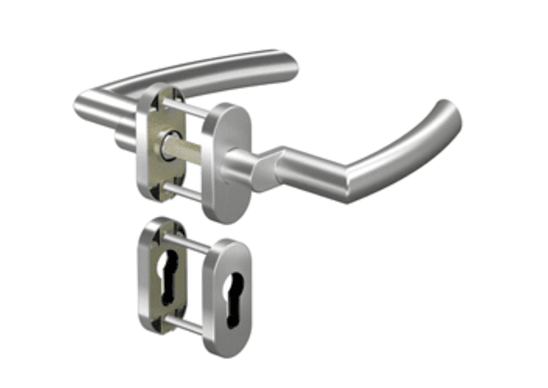 OGRO Drückergarnitur 8940A/6621SR FS; Produkttyp: Drückergarnitur; Produkttyp (Hersteller): Drückergarnitur; Ausführung: Rosette; Befestigungsart Drückerrosette (außen): verdeckt verschraubt; Befestig